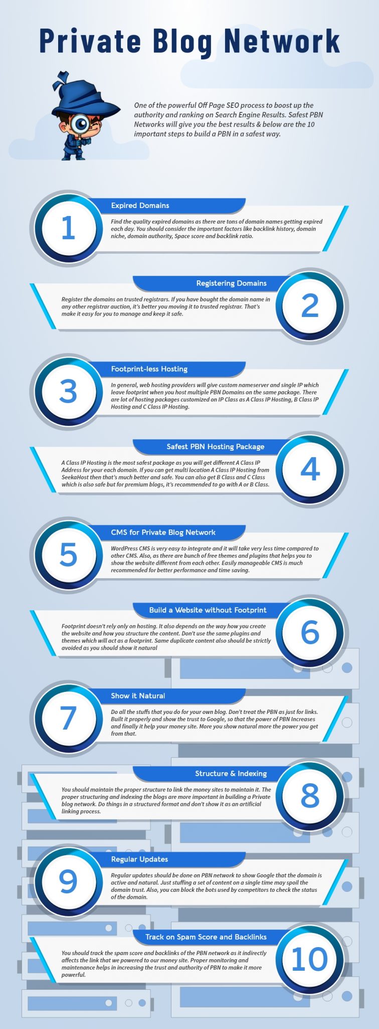 Remember to use different IP addresses and registration details for all your blogs. This is important to avoid leaving behind footprints.